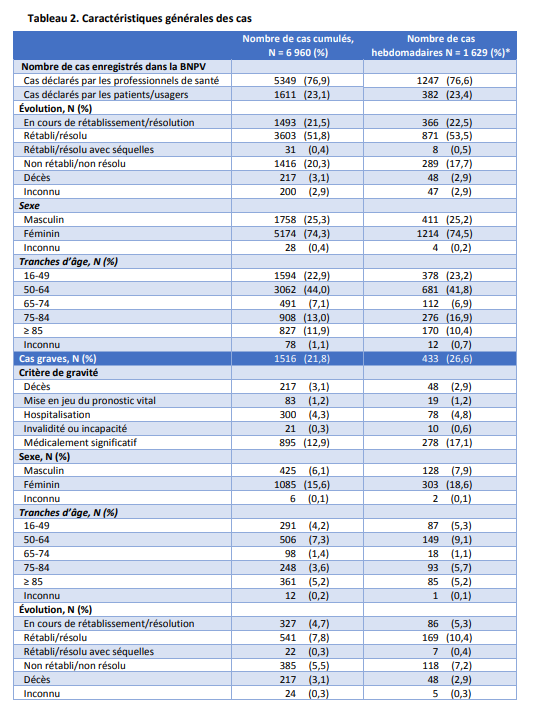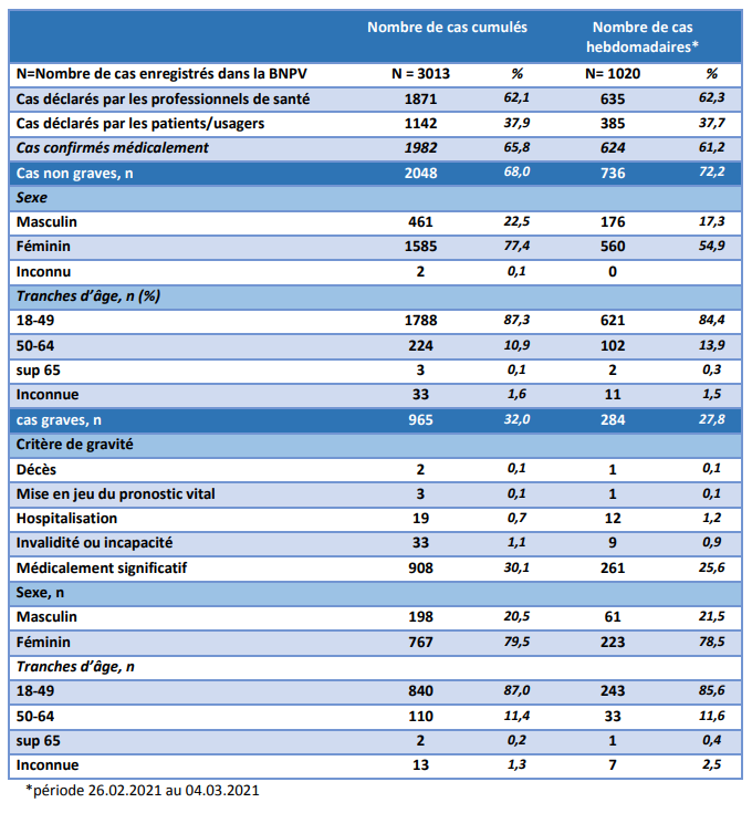 Les chiffres se basent sur 2 481 436 personnes vaccinées (1 ou 2 injections ), soit 0.3% des piqués